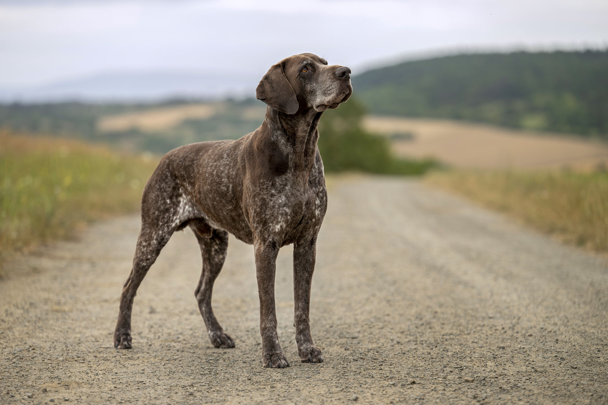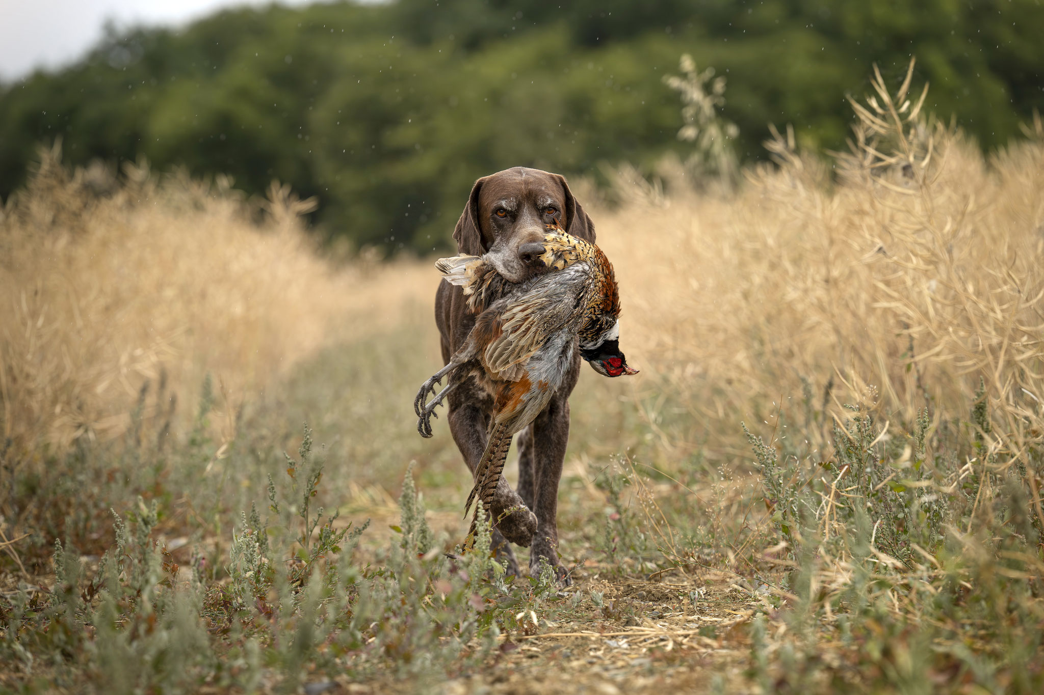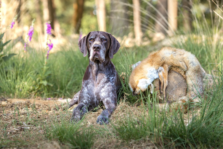 Mit seiner Größe von 65 cm liegt der sehr ansprechende Braunschimmelrüde im guten Rahmen.